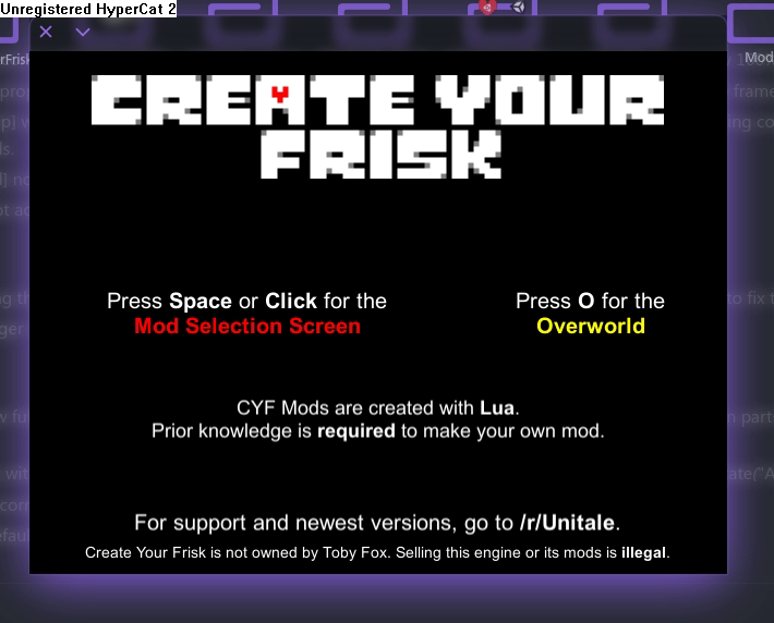 Create Your Frisk is a fork of Unitale that continued development under RhenaudTheLukark (or Rhen for short) for many years.
