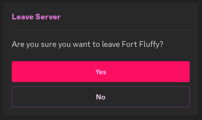 . I asked some of my friends to introduce me to their friends. I was desperate, it was all I could do. Thankfully, another dear friend of mine set up a personal server with herself and several of her friends, including me. She did that just to help me in my time of need and I'm extremely grateful, especially because the friends I made there are still our friends to this day. But around this time, I made the decision to leave my personal server. It was a big deal, and took several days of preparation. I came to a very bad place when I prepared myself to abandon one of the only "homes" I've ever known. But I knew, intrinsically, that the group in my personal server was holding me back, and I had to break free. I did one final "big interaction" involving a lengthy voice message, to share my feelings and determine who's my friend and who isn't. I counted my blessings, held close the friends I wanted to keep, and hit the button to leave.